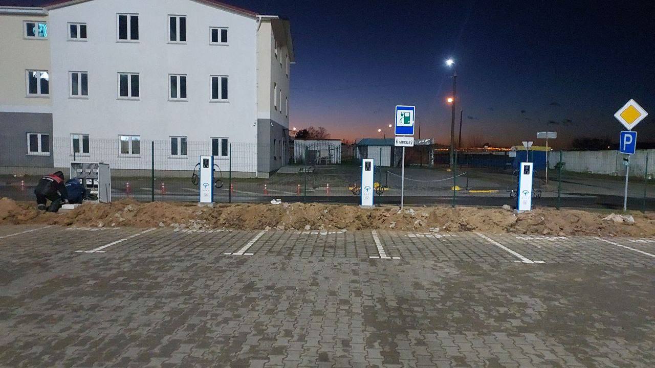 Прокладка кабелей, подготовка основания, монтаж зарядной станции.